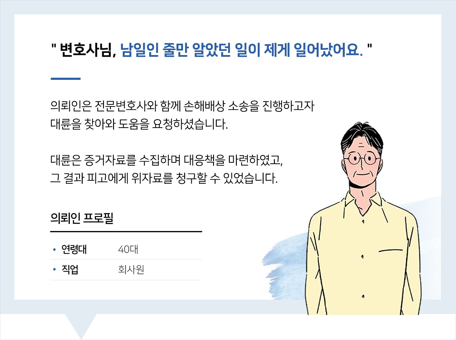 전문변호사의 조력을 받아 피고에 대하여 손해배상 소송을 제기하고자 부천손해배상변호사를 찾아주셨습니다.