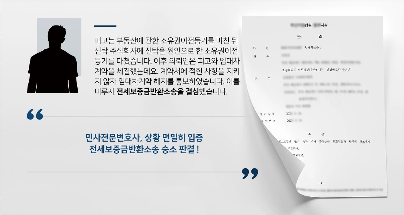 ![[전세보증금반환소송 승소] 민사전문변호사, 피고의 보증금반환 의무 명확히 밝힘](/_next/image?url=https%3A%2F%2Fd1tgonli21s4df.cloudfront.net%2Fupload%2Fseo%2Fsuccesscase%2F20231115090848293.webp&w=3840&q=75)